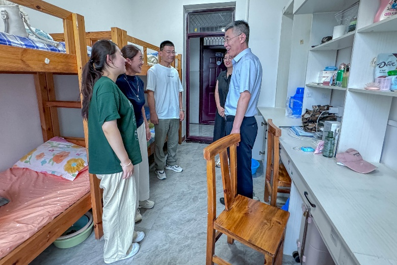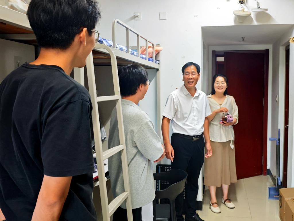 走访过程中,领导和老师们留意新生初入校园的状态,关切询问他们与同学的相处情况、对新环境的适应进度。同时鼓励新生多主动探索校园资源,积极参与社团或学科活动,在熟悉环境的过程中拓宽视野,以积极心态开启大学学习生活;并且也提醒新生们要注意安全,遵守校规校纪,遇到问题及时与老师和同学沟通。