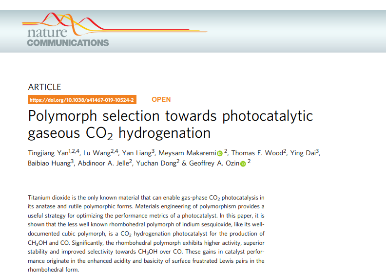 颜廷江教授与多伦多大学Geoffrey A.Ozin教授合作在太阳能光催化还原CO2研究领域取得重要进展,分别在国际顶级学术期刊《自然》子刊《Nature Communications》和《Angewandte Chemie International Edition》上发表两篇高质量学术论文。