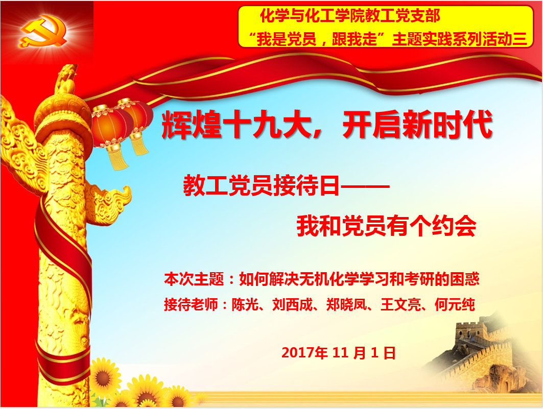 教工党支部成功开展了第三期“我是党员,跟我走”主题实践系列活动——教工党员接待日。本次活动主题为“如何解决无机化学学习和考研的困惑”,无机化学教研室党员教师为化学院部分本科生进行了答疑解惑。