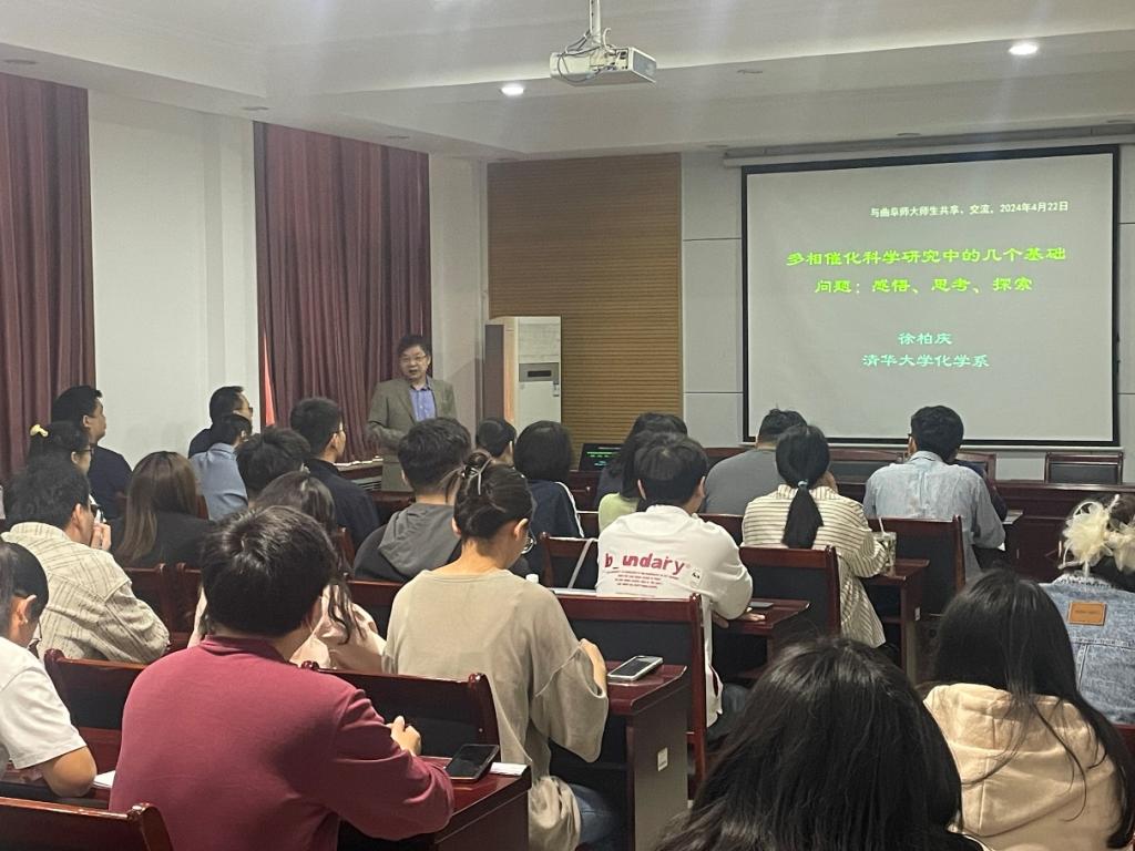2024年4月22日,清华大学徐柏庆教授受邀访问学院,并为全院师生作了题为“多相催化科学研究的几个基础问题”的学术报告,报告由篮球比赛直播