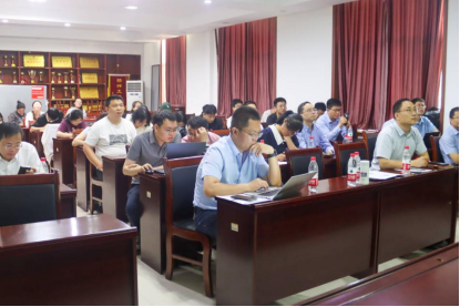 图为副院长李平主持会议和侯国梁研究员介绍兰化所情况