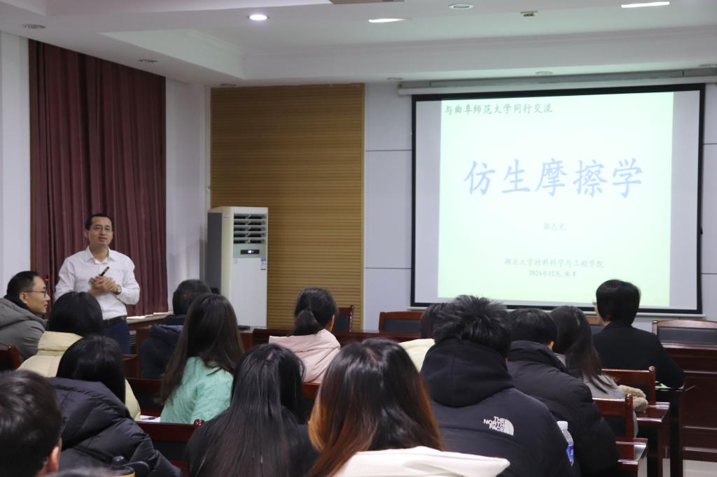 作“仿生摩擦学”学术报告。本次报告会由院长冯媛媛教授主持,学院青年教师及研究生参加。