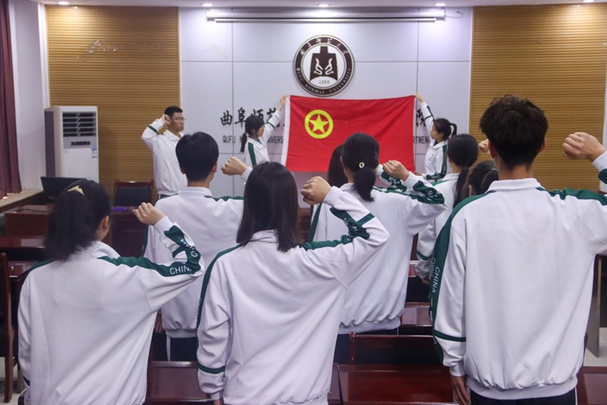 于化学楼226教室开展重温入团誓词活动。本次活动由篮球比赛直播