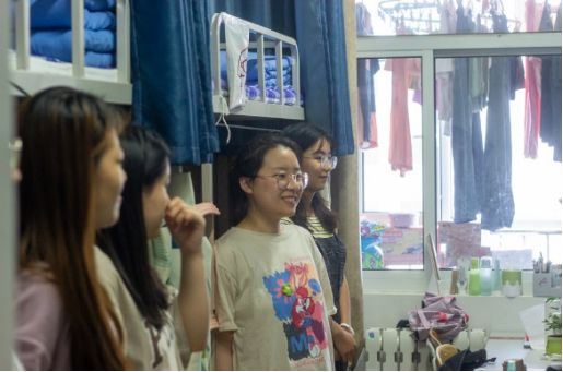 图为老师走访学生宿舍