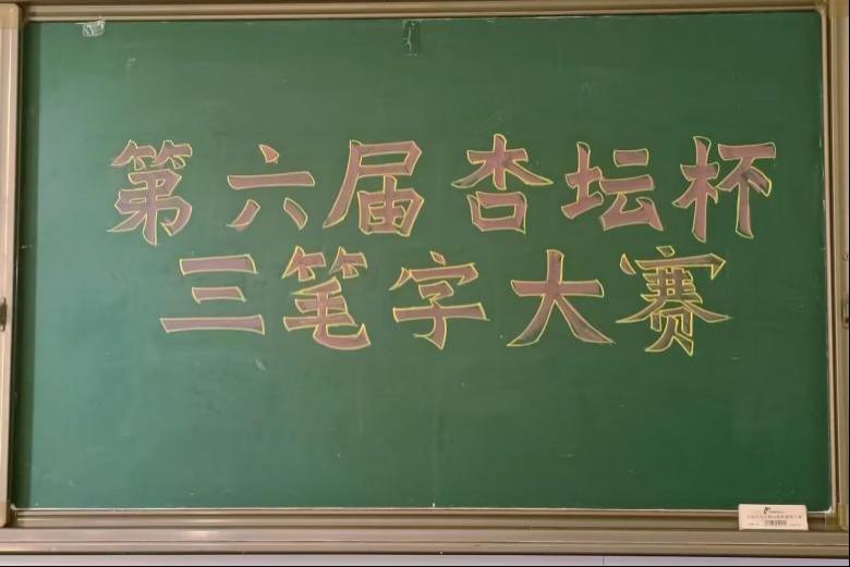 图为第六届杏坛杯三笔字作品展示