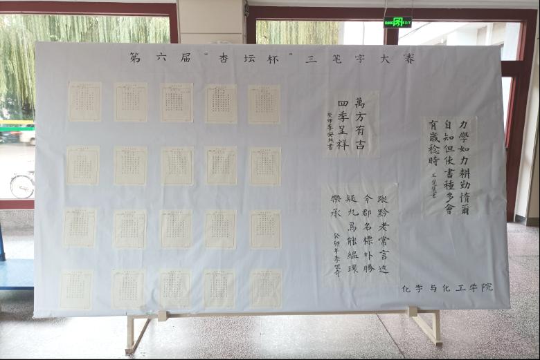 于10月14日在化学楼举办第六届“杏坛杯”三笔字大赛。本次活动面向化院全体师范生以及部分非师范生。