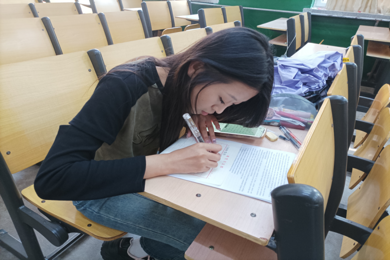 图为第六届杏坛杯三笔字大赛钢笔字比赛现场