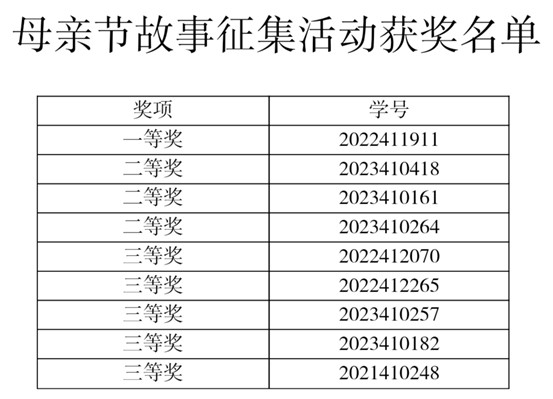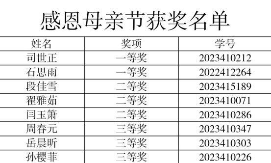 图为“浓情五月天,感恩母亲节”活动获奖名单
