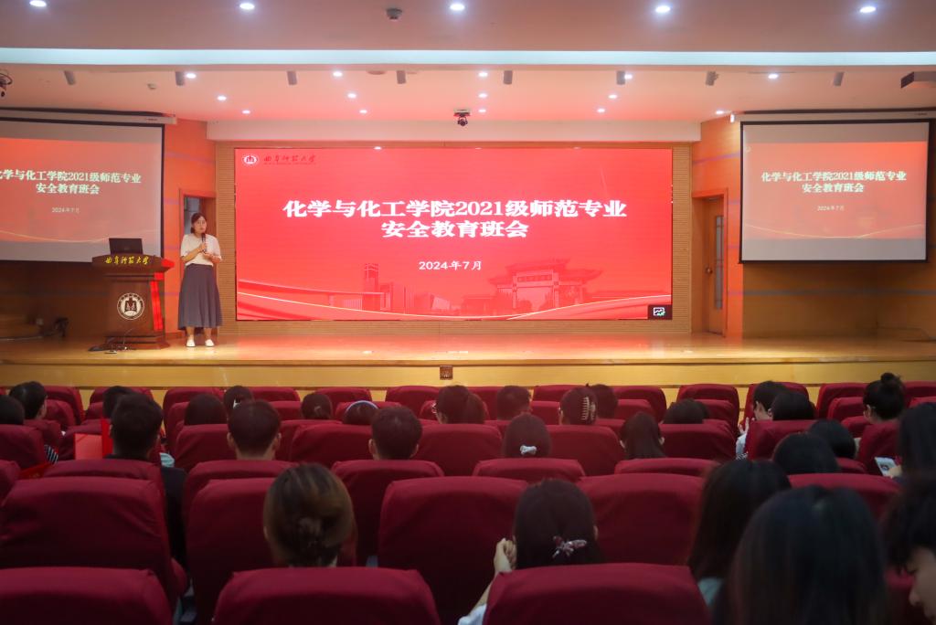 于孔子会堂召开2021级化学师范专业暑期安全教育主题班会。会议由学院团委书记王亚平主持,2021级化学师范专业全体学生参加会议。