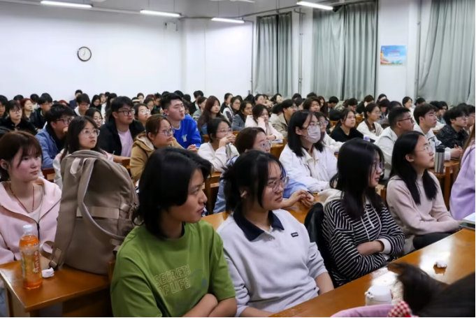 宣讲会围绕项目介绍、安全保障、申请流程及成果收益四大板块展开。会上,韩瑾凤系统梳理了项目历史、岗位类型、薪资福利及费用构成,详细说明了项目申请、推荐信以及实习证明等一系列项目流程,强调了该项目由美国政府监管,有全程保险支持,并具有完善的应急联络机制。
