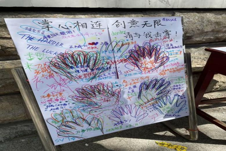 本次活动中,学生们积极参与,手绘手掌轮廓并写下寄语,形成一个富有意义的手掌链,学生们之间传递彼此的鼓励与美好憧憬,共同感受温暖与蓬勃向上的力量。