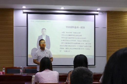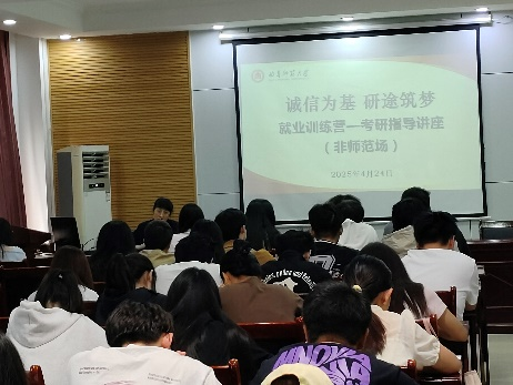 于4月24日召开2027届考研指导座谈会—2023级本科非师范生专场,全国“考研联盟”特邀分析师、新东方在线首席考研咨询规划师郭涛主讲,学院2023级辅导员黄秉帅、孙兰馨和2023级本科非师范生参加。