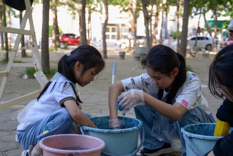 活动伊始,主持人深入浅出地讲解扎染历史与技法精髓,为学生们揭开千年技艺的神秘面纱。随后,学生们专注地拿起空白帆布包,运用折叠、捆扎等技法精心创作,小朋友们也驻足观望,动起双手感受着传统文化的无限魅力。浸染布料过程中,大家探索色彩晕染规律,让帆布包在一浸一晾间完成蜕变。漂洗拆线后,一件件承载着传统文化与创意灵感的帆布包惊艳亮相。这场活动让青年深度触摸非遗技艺的文化肌理,唤醒传承创新的使命意识,同时扩大了非遗文化影响力,吸引了更多社会群体关注传统文化的创新传承。