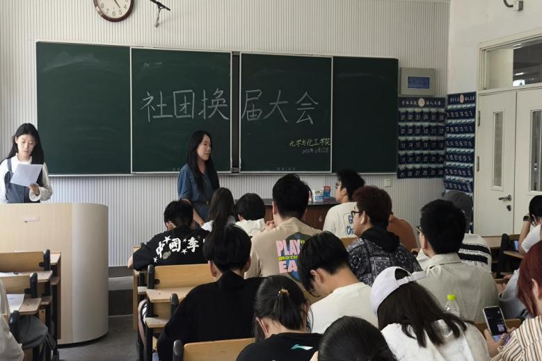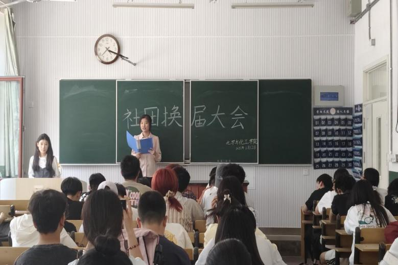 于6月12日下午在化学楼102教室举办社团换届暨社团团支部换届大会。会议由社团管理部付欣雨主持,社团指导老师梁梦琦受邀出席,学院各社团全体成员参加。
