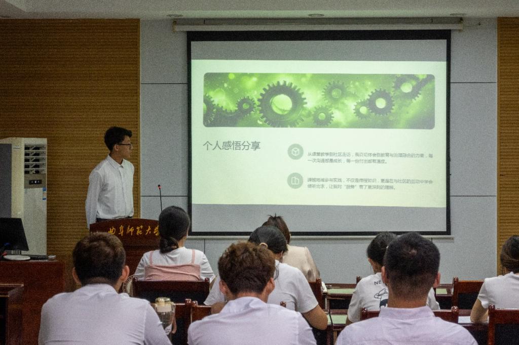 在答辩展示环节,不同实践队伍的同学依次上台,通过精心制作的PPT,将实践中的调研数据、实地影像与鲜活案例清晰呈现,并分享了深入社区、乡村实践中的所见、所闻、所感。评委老师们认真听取了每一位同学的答辩,并针对实践过程中的问题和成果进行了细致的点评和指导,为同学们今后的实践活动提供了宝贵的参考。