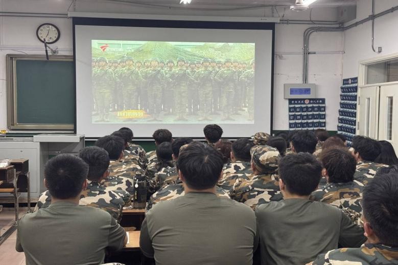 图为新生观看九三阅兵视频