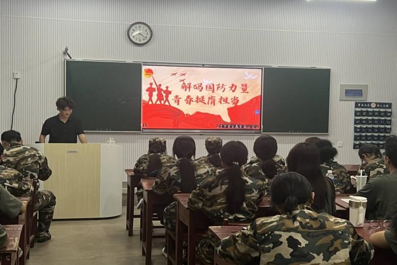 活动伊始,各班集体组织观看了九三阅兵视频,新生直观感受到强大的国防力量与军队风采。随后,各班学长辅导员围绕“解码国防力量,青春挺膺担当”主题开展团会,不仅为新生深度解读我国国防建设的辉煌成就,还结合抗战胜利的历史,清晰阐述了国防稳固对民族独立、国家发展的关键意义,进而引导新生厚植家国情怀,明确新时代青年在国防建设中应肩负的责任。