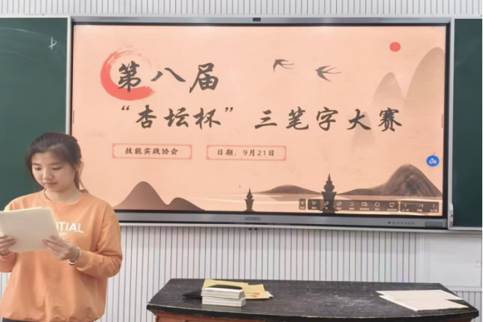 (通讯员:常梦宇 摄影:常梦宇)为传承中华优秀传统文化,提升学生的书写能力和艺术修养,9月21日,技能实践协会在篮球比赛直播