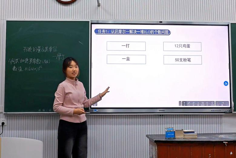 本次大赛采用线上录制视频的方式,视频中参赛选手借助PPT和板书呈现了化学课堂的教学过程,凭借流畅的语言和大方自信的肢体动作,展示了化学师范生扎实的教学专业素养。