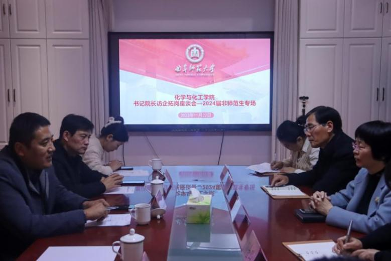 于11月22日下午15:00在化学楼209会议室举办书记院长访企拓岗座谈会——2024届非师范生专场,学院院长冯媛媛,党委副书记孙金玲,副院长李平、刘鹏,就业辅导员老师孙兰馨,毕业班辅导员李文静、曾川出席会议。本次会议有鲁南制药集团股份有限公司、山东硅科新材料有限公司、山东恒信集团有限公司3家企业参与,李文静老师主持。