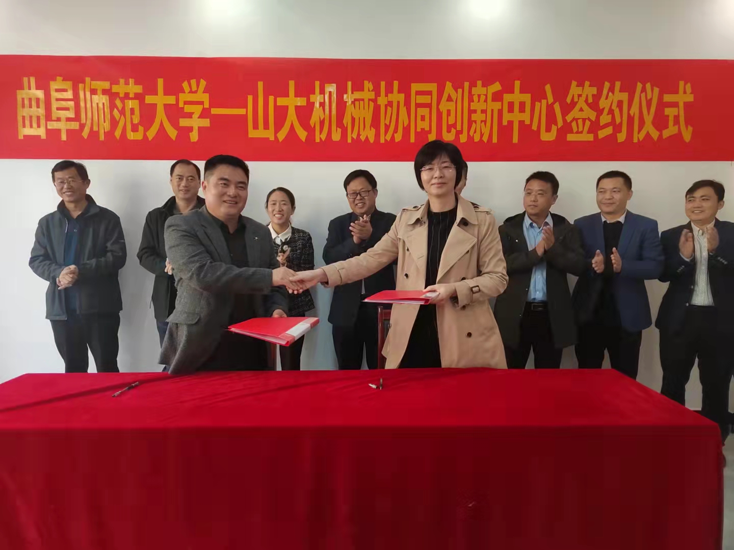 签约仪式上,杨月伟处长和赵琪书记分别就校企合作致辞,冯媛媛院长与山大矿工机械设备有限公司总经理张伟在合作协议上签字,杨月伟与张伟为曲阜师范大学山大机械协同创新中心揭牌。双方表示,将在企业发展规划、产业转型升级、企业技术创新、高端培训、共建社会实践工作站等领域开展深入合作。