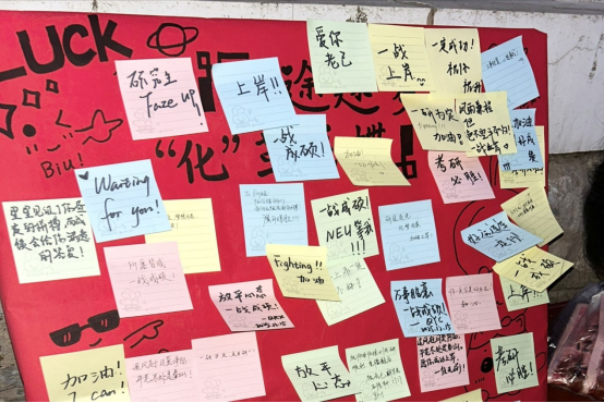 图为参与者手写的考研加油祝福墙